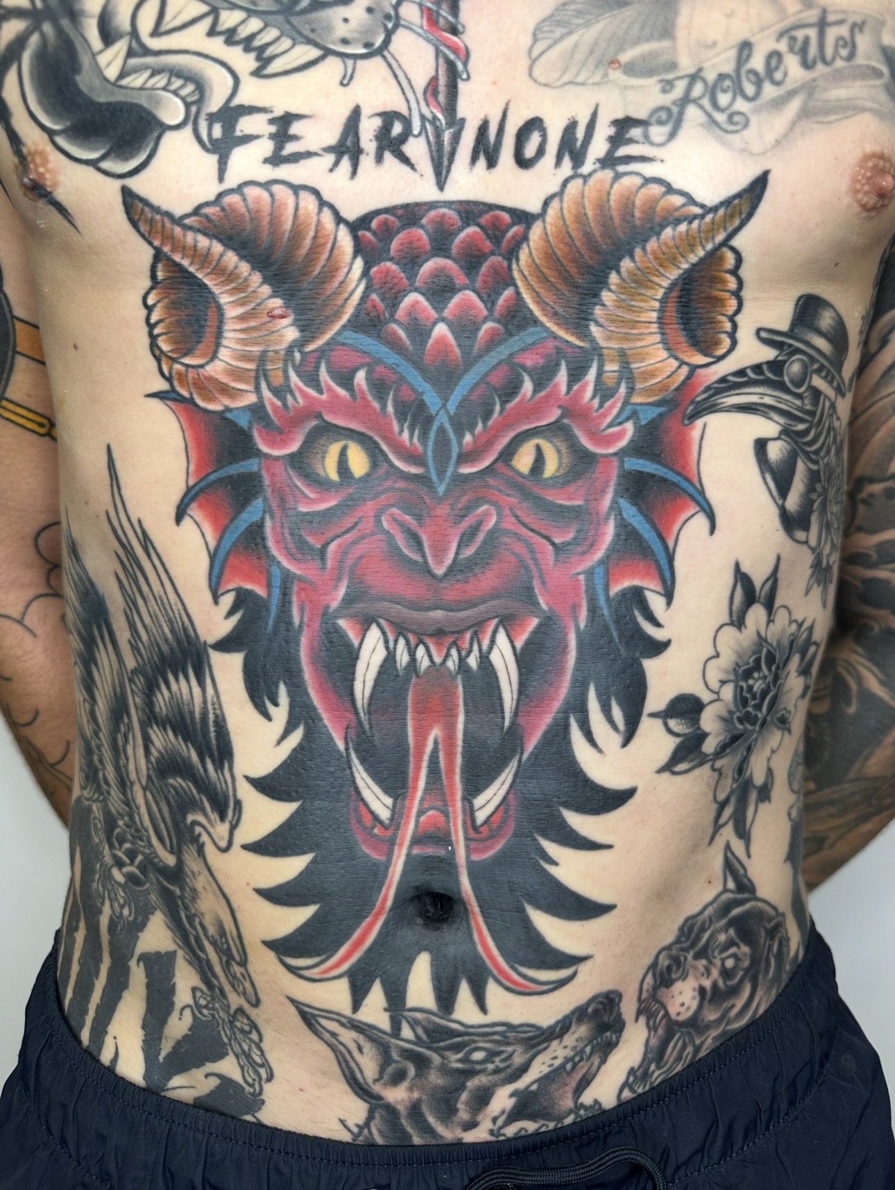 Timmy grew up in West Ryde and began tattooing in 2000 at a shop in Sydney's Inner West. After some time there he moved to the Northern Beaches to work with artists who inspired him from the beginning of his career. From a young age Timmy always enjoyed drawing and painting anything that inspired him from Dragon Ball Z to Scooby Doo. Before tattooing he worked various jobs but was always sketching in his down time as he kept pushing towards a future career in tattooing. Inspired by the culture of tattooing his work emulates the tattoos of the past with bold lines and solid colours. He also enjoys tattooing fine line work and anything that comes into the shop as a walk in.